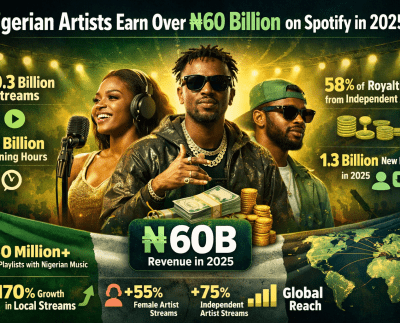 Nigerian Artists Earn Over ₦60 Billion on Spotify in 2025