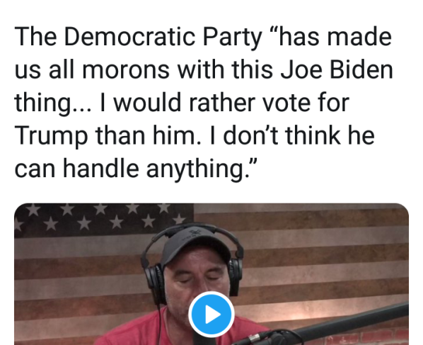 Comedian and podcast host Joe Rogan said he would prefer to vote for President Donald Trump in November rather than Joe Biden. Speaking with Thiel Capital managing director Eric Weinstein…