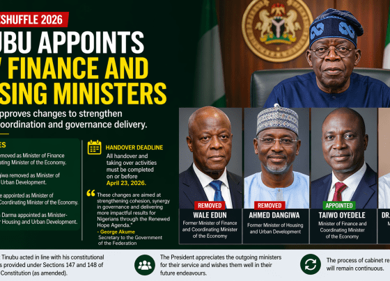 By Elizabeth Ugbo President Bola Ahmed Tinubu on Tuesday approved a Federal Executive Council reshuffle in Abuja, removing Wale Edun…